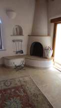 As a fire resistant material, stone makes an excellent material for manufacturing decorative and functional elements of fireplaces. Hearths can be made in a number of different styles using slab, tile or cladding; these styles include but aren't limited to "step ledges", cantilevered mantels that create a ledge that "floats" above floor level, and hearths inlaid into the floor either flush or with a rise and profiled edge. The stone used for hearths is treated to make it resistant to staining and most standard finishes are applicable; please note that substitute processes may have to be used in order to remove flammable products from the process but with similar appearances to the traditional types. Fireplace surrounds can be made out of carved stone or tile as well; these usually take the form of a carved blocks, inlaid slabs or tile/irregular cladding of matching or complementary material to the hearth and mantel to join the overall structure together. Mantels can also be made using stone cantilevered or otherwise anchored into the wall (unless column surrounds are used) to create a ledge of the desired size above the hearth, for visual balance and load bearing requirements these tend to be around 4" to 6" thick. Even if simple cladding is used, stones can be selected to create a distinct appearance surrounding the fireplace to visually accent it w/o any additional structure.